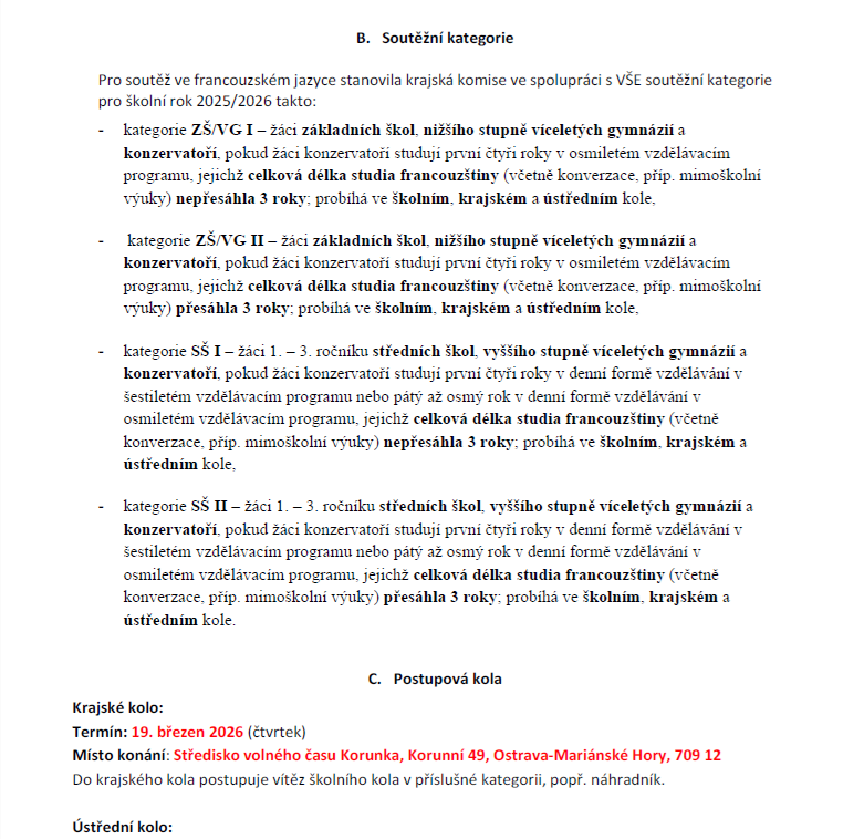 Přihlášku do krajského kola je nutné vyplnit elektronicky zde, nejpozději do 5. března 2026.
